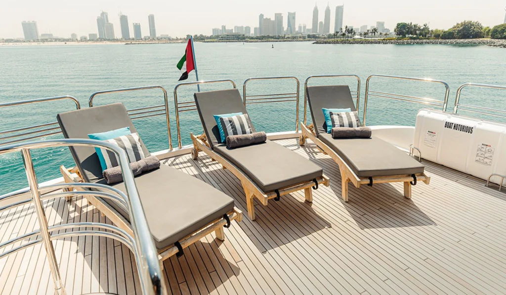 Enjoy ample space on the deck with panoramic views of Dubai’s most stunning landmarks.