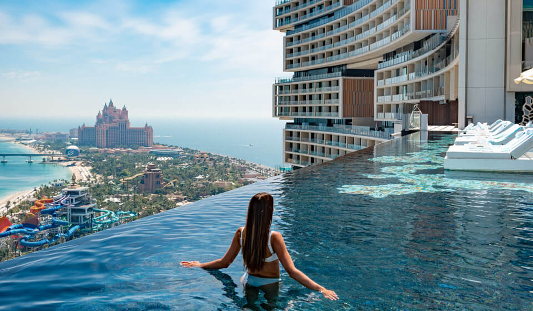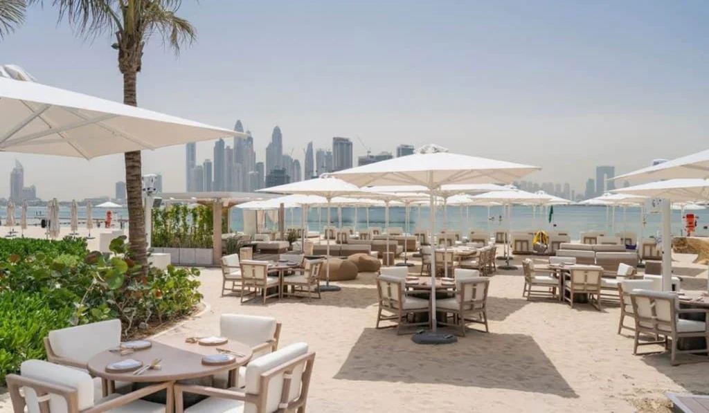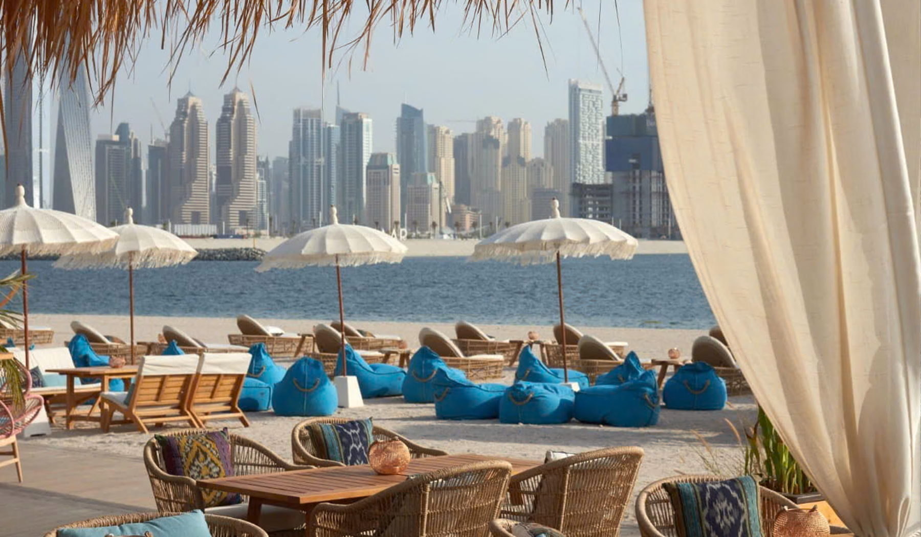 Relax in the exclusive beach clubs and lounge areas with panoramic views of the Arabian Gulf and Dubai's skyline.