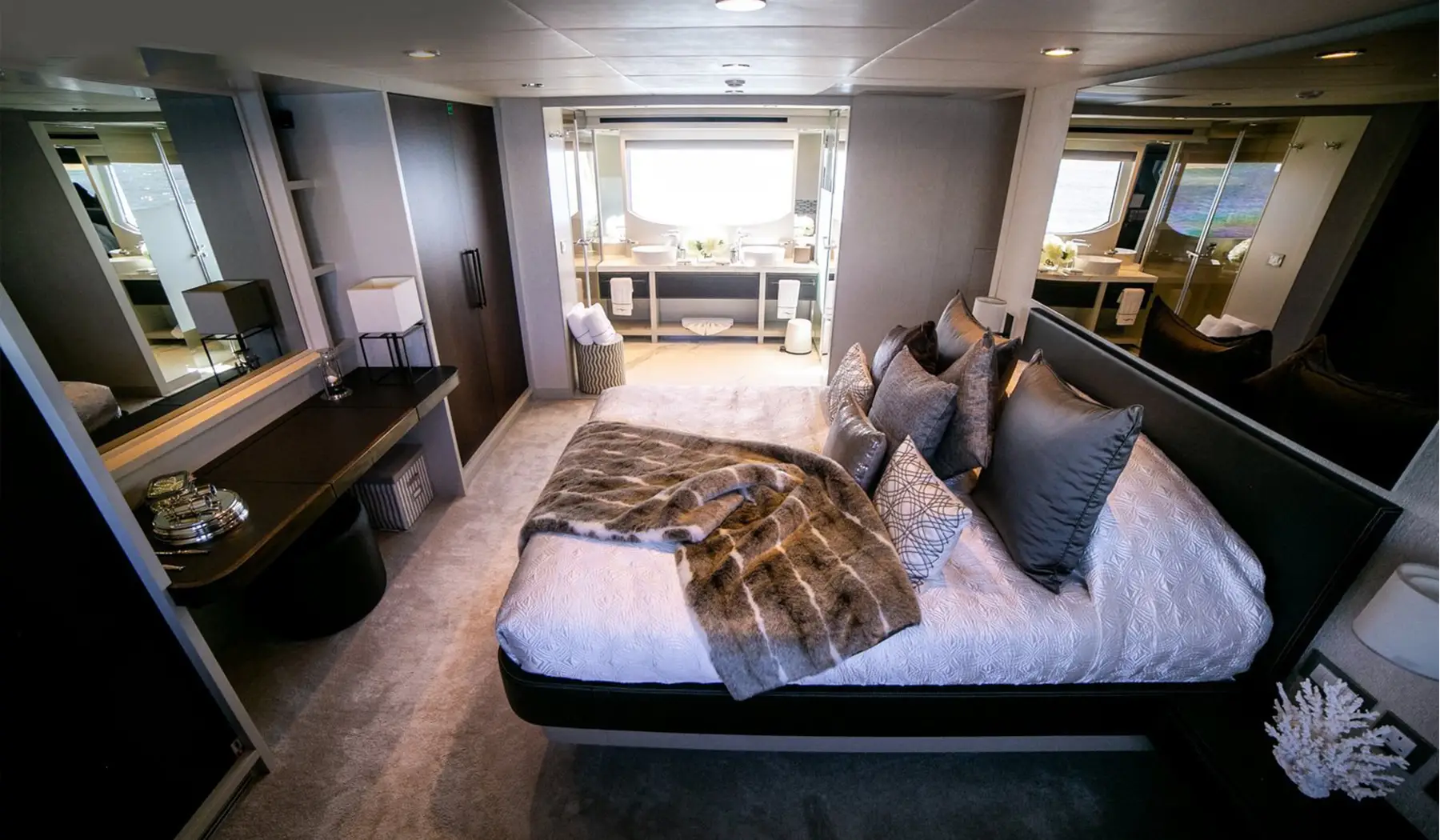 Our yachts feature spacious and luxurious cabins, offering the utmost comfort with en-suite bathrooms, plush bedding, and panoramic windows.