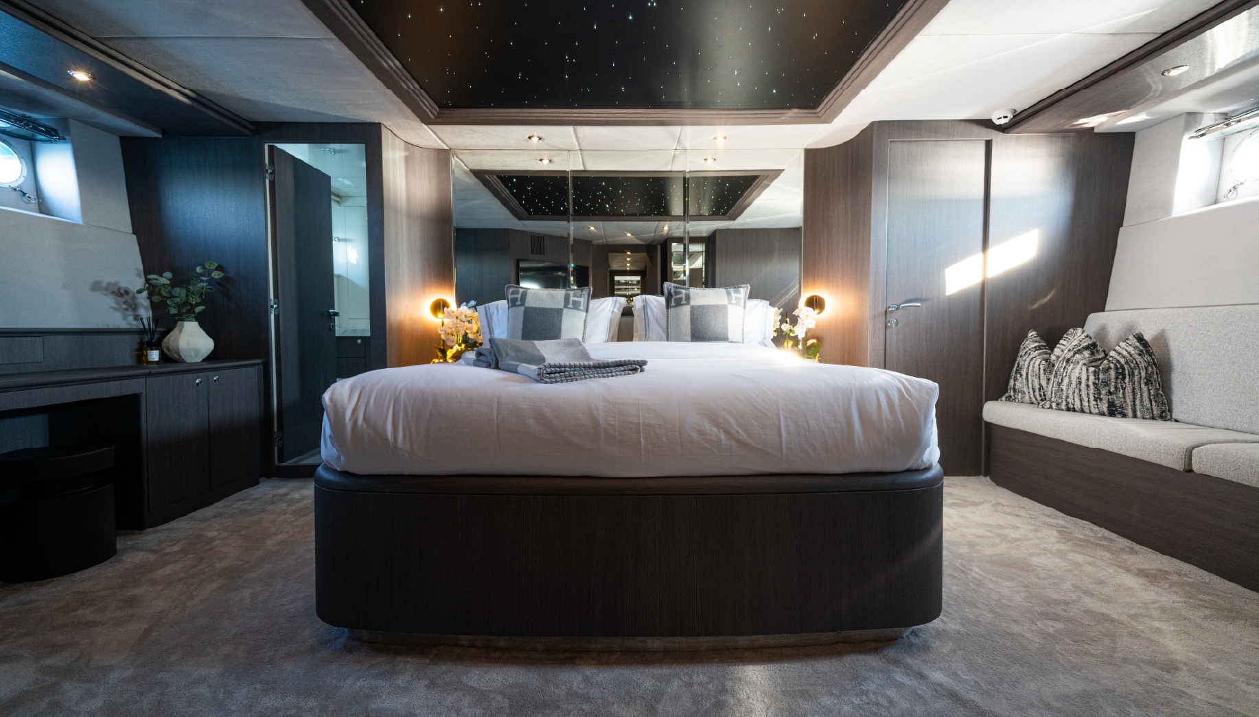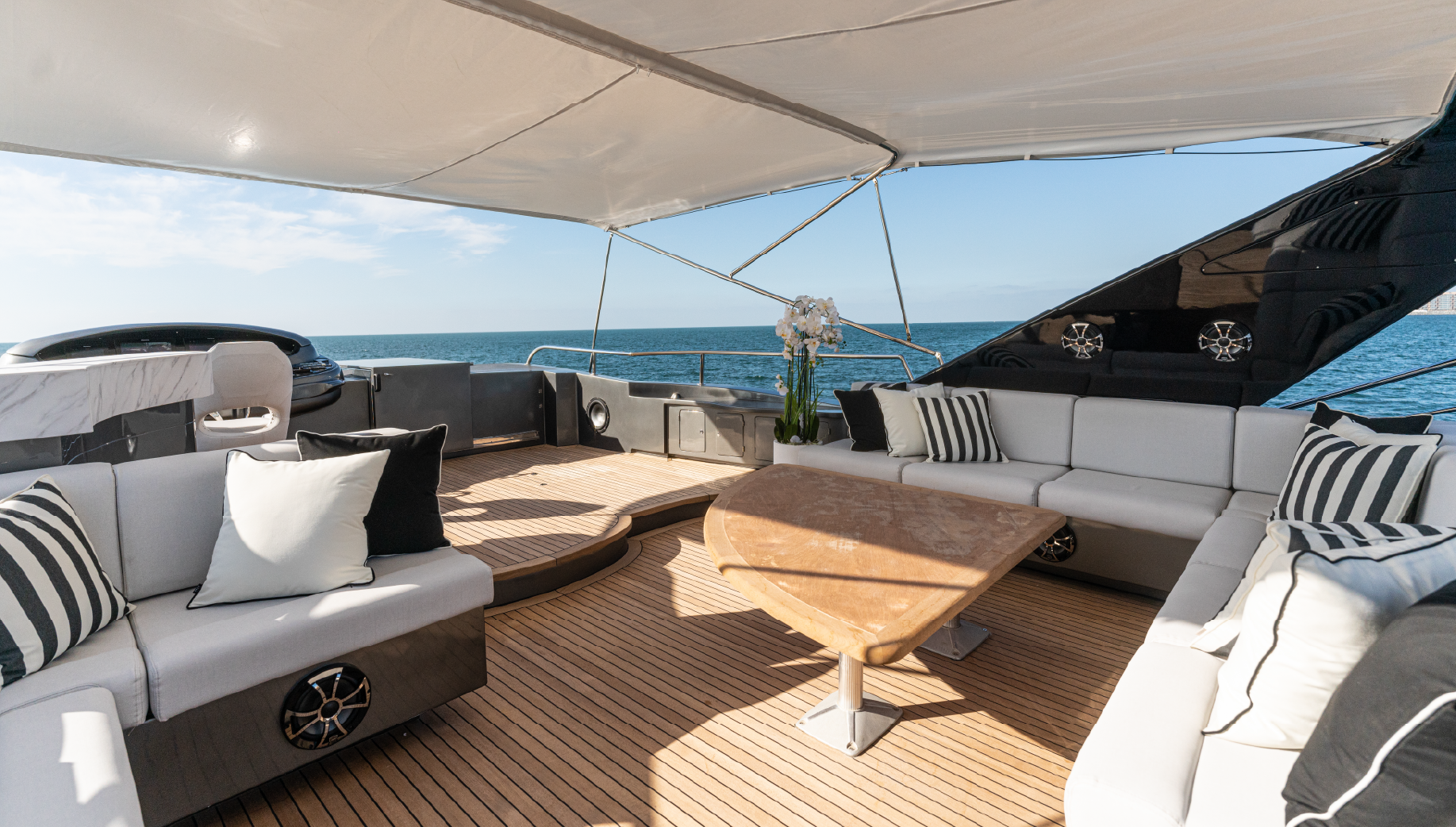 Embark on a luxury trip aboard Spectre, a 100ft Azimut yacht that has been meticulously refitted to offer an unparalleled boating experience. Perfect for day charters in Dubai, this yacht boasts sleek, modern interiors and updated amenities designed to impress. Whether you’re hosting an elegant event or enjoying a relaxing day with friends and family, Medusa sets the stage for unforgettable moments on the water.