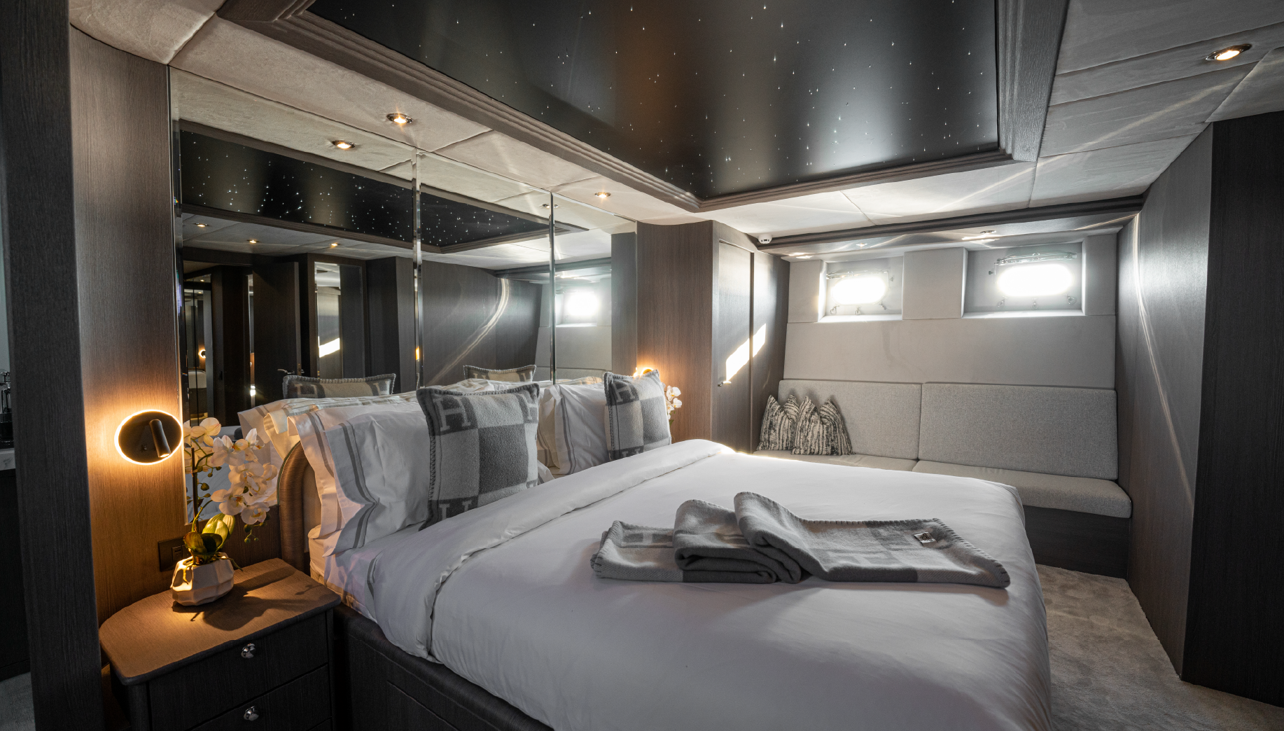The yacht’s interior features refined furnishings, updated décor, and state-of-the-art systems, including a modern galley and cutting-edge audiovisual equipment. Accommodating up to 8 overnight guests, Spectre offers a spacious master suite, VIP cabin, and two double cabins, each designed for ultimate comfort. With room for 30 guests during the day, it’s the perfect choice for larger gatherings or exclusive celebrations.