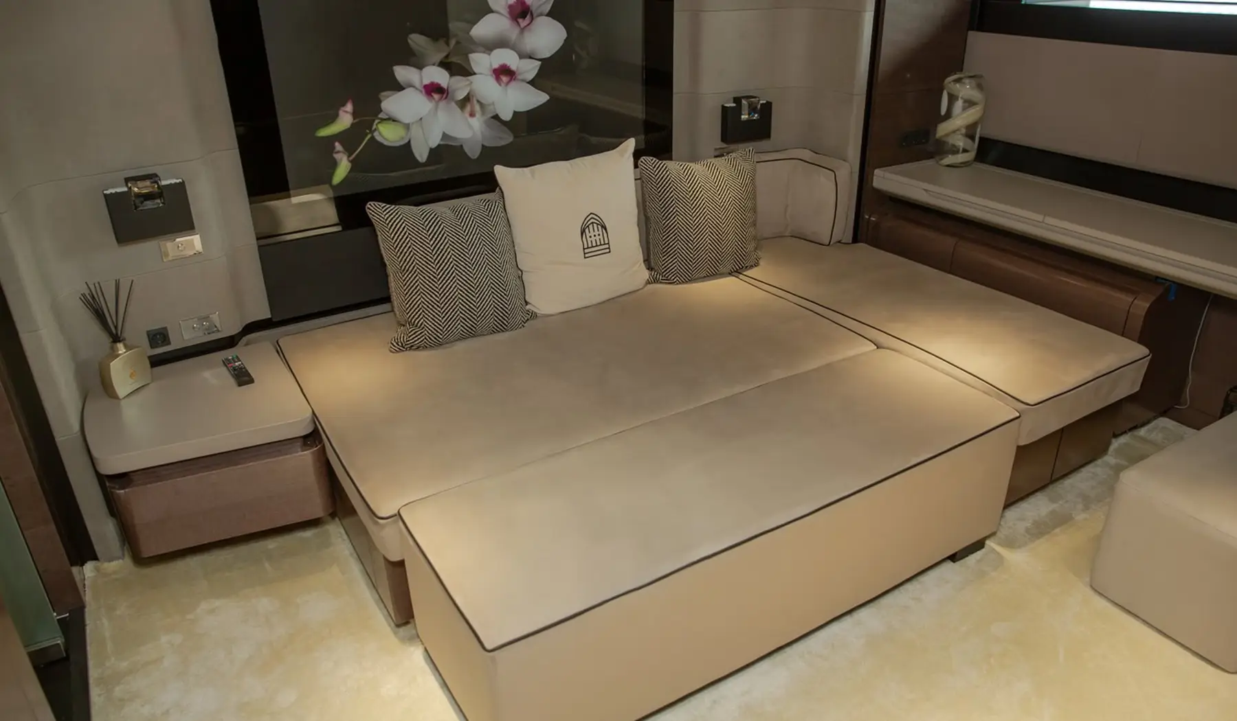 Powered by robust engines and managed by an expert crew, this yacht offers smooth sailing for up to 25 guests during the day and 10 overnight. From the Dubai Marina to the Palm Jumeirah, Suffuriya guarantees a journey of elegance and style on Dubai’s sparkling waters.