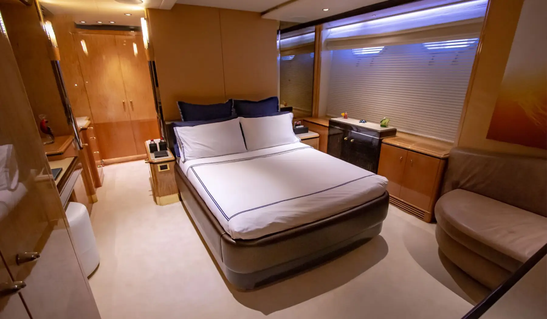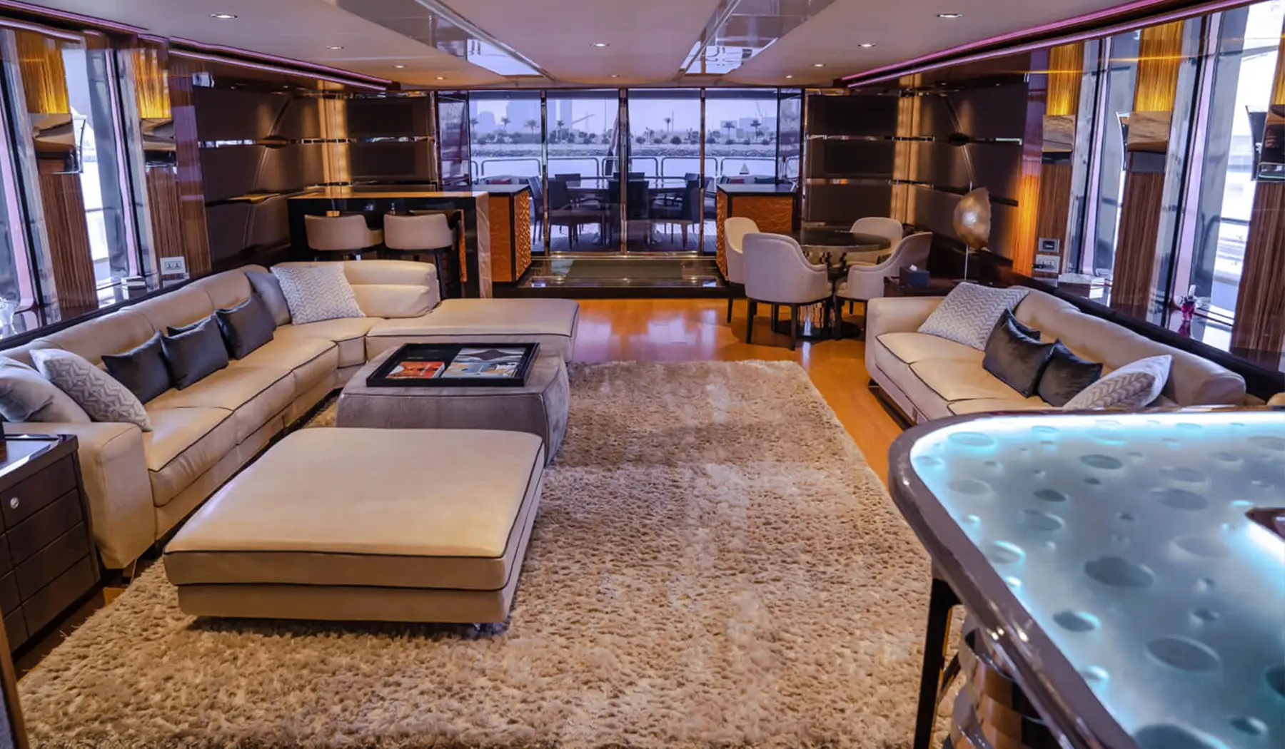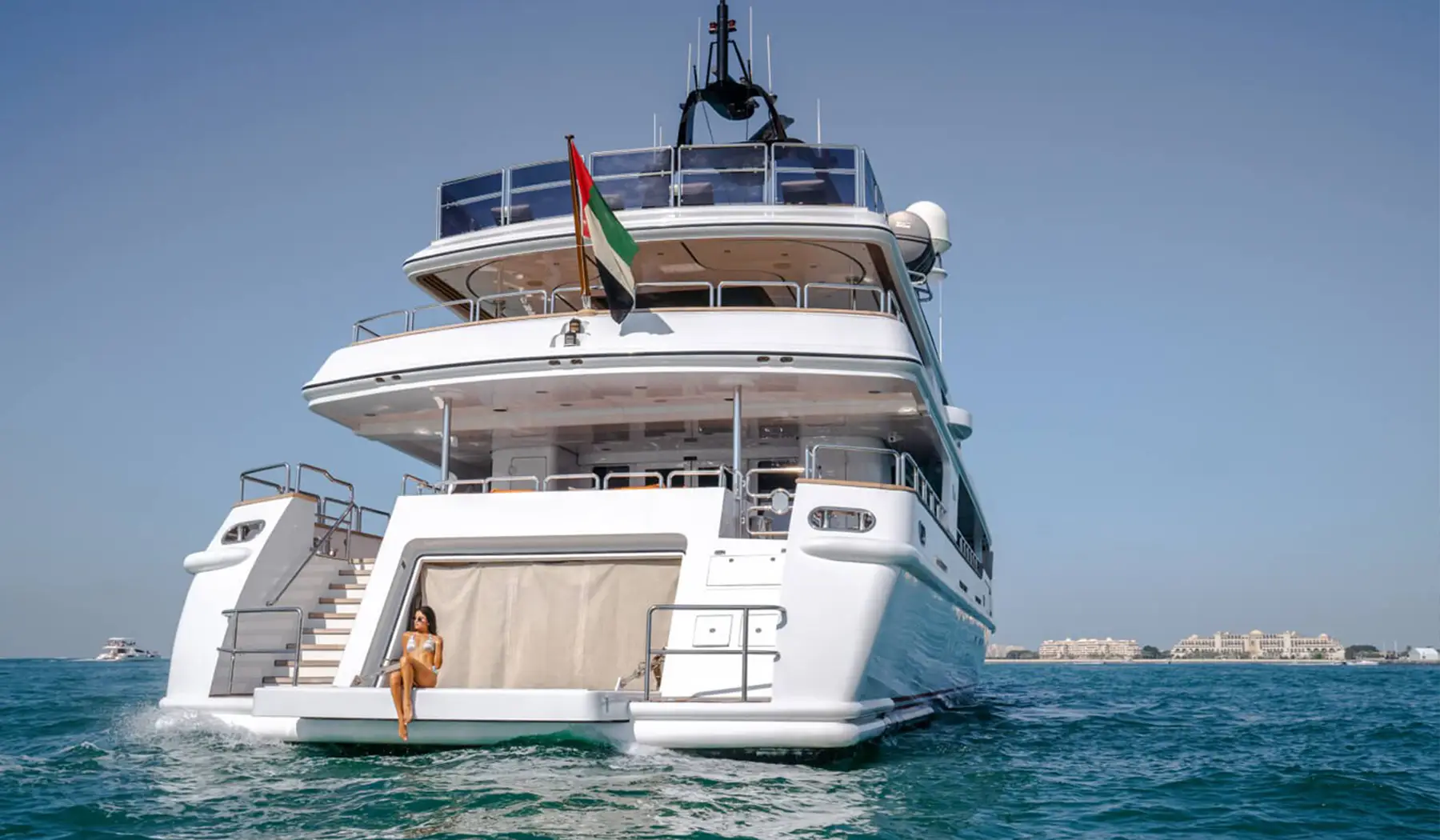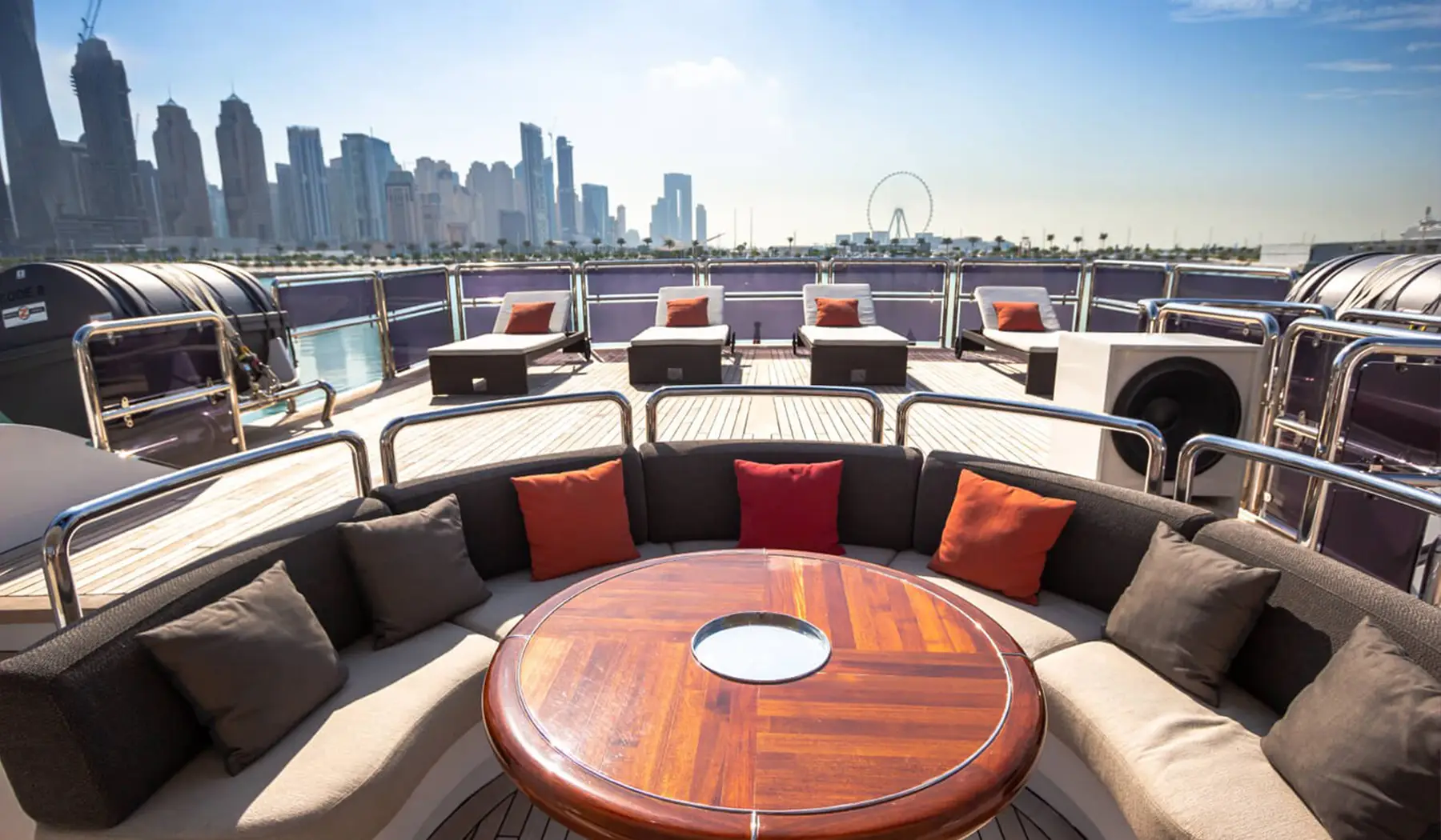 Powered by two MTU engines and cruising comfortably at 16 knots, Benetti provides a smooth and safe journey across Dubai’s sparkling waters. With a professional crew and exciting water toys, this yacht is the perfect choice for creating lasting memories in unmatched style.