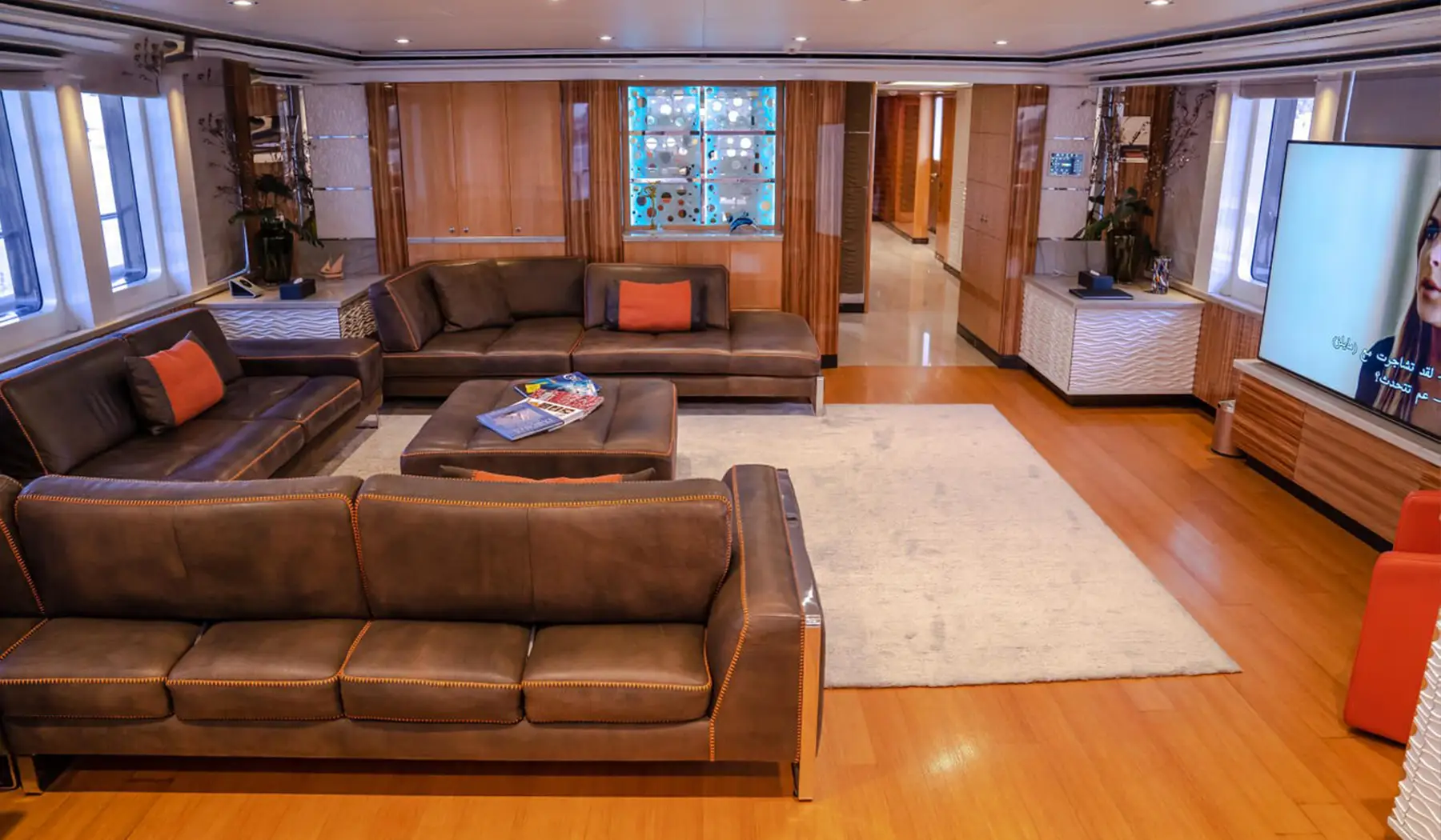 With expansive decks featuring a Jacuzzi, wet bar, and stylish sundeck furniture, Benetti offers ample space for relaxation and entertainment. Inside, the yacht boasts a stunning dining area with a chandelier, a spacious main salon, and five beautifully appointed cabins, accommodating up to 12 overnight guests. The yacht’s luxurious interiors and attention to detail reflect Benetti’s legacy of excellence, ensuring an unforgettable stay for every guest.