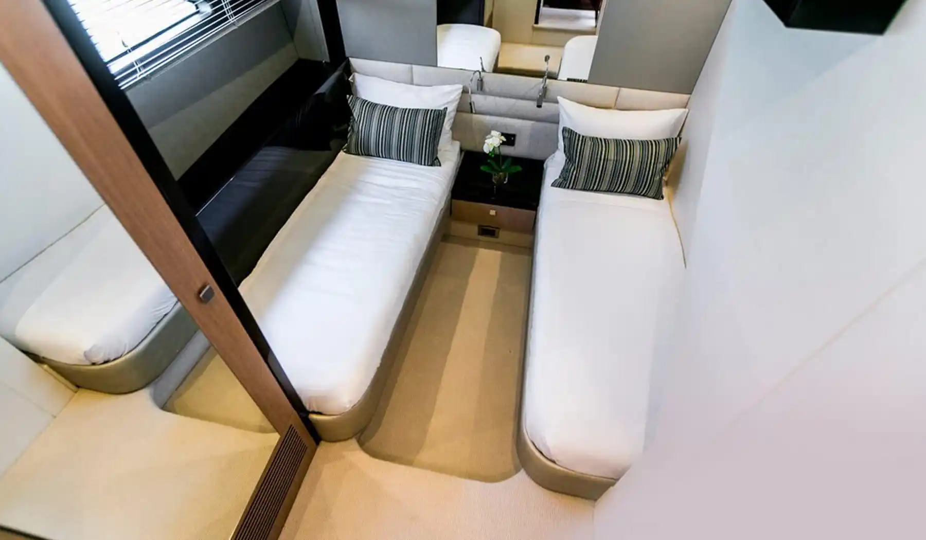 This yacht features four luxurious cabins—a Master Suite, VIP Cabin, and two Twin Cabins—providing comfortable accommodation for up to 8 guests. Its stylish interior is complemented by panoramic views, state-of-the-art features, and a spacious layout, making it ideal for both relaxing and entertaining.