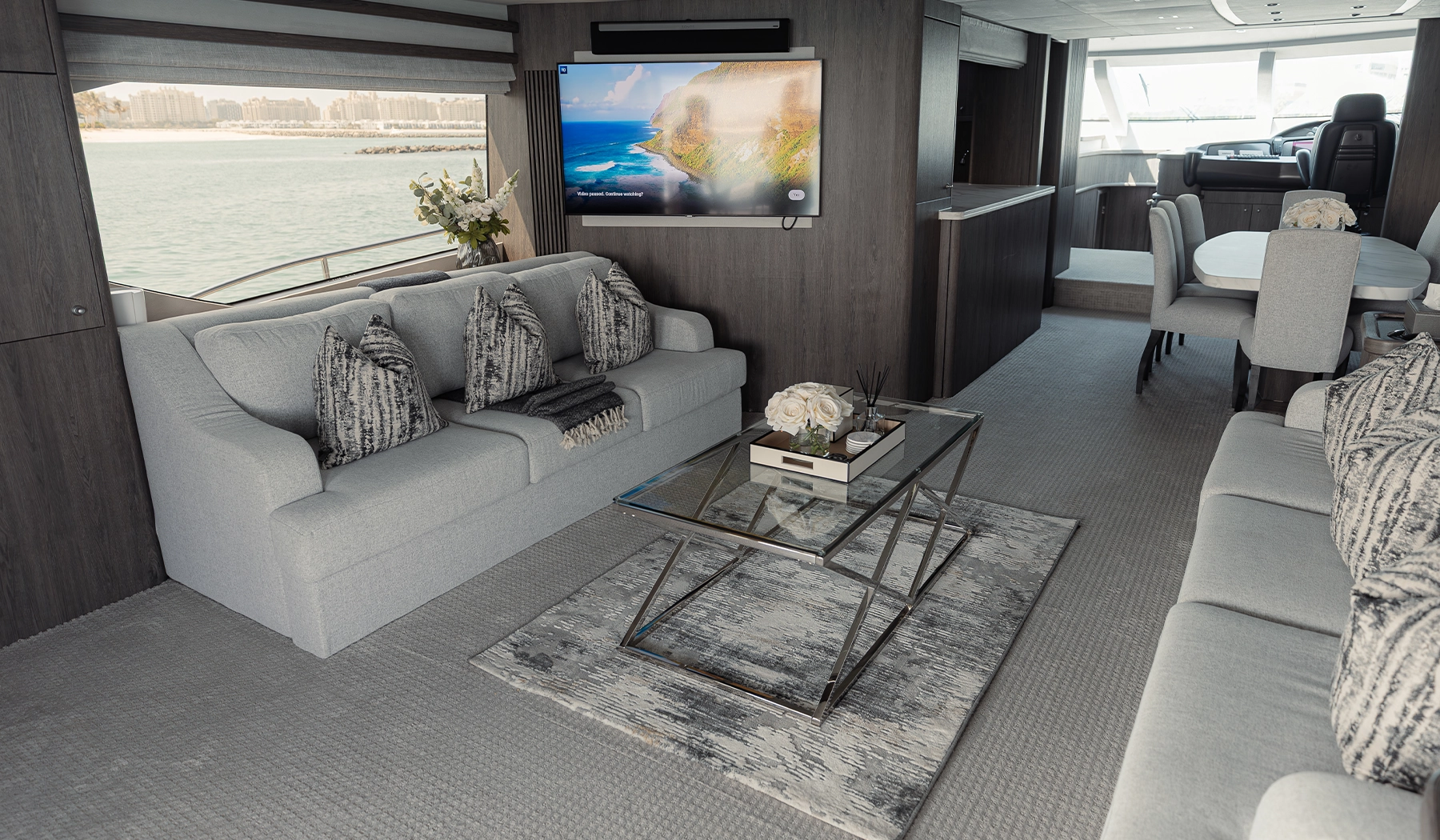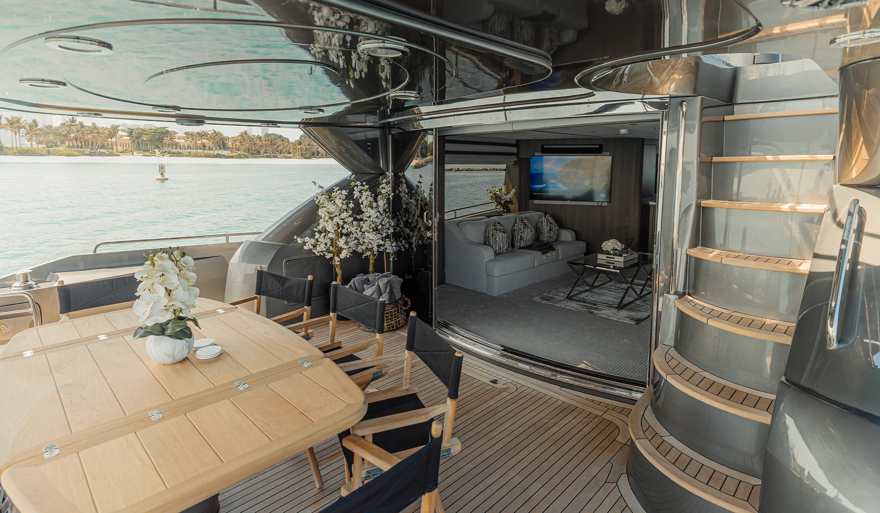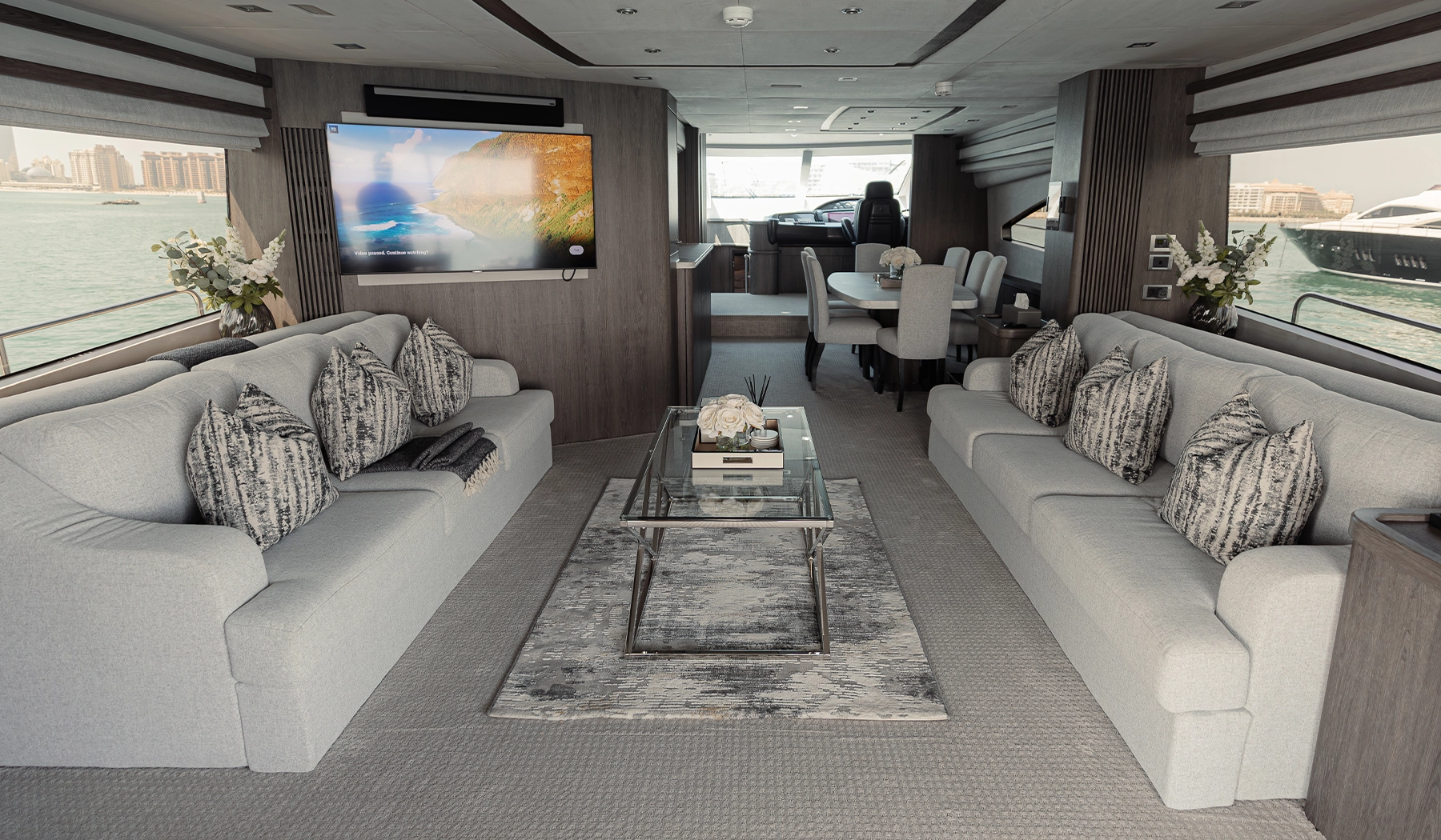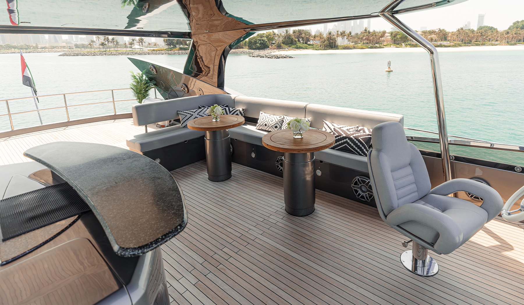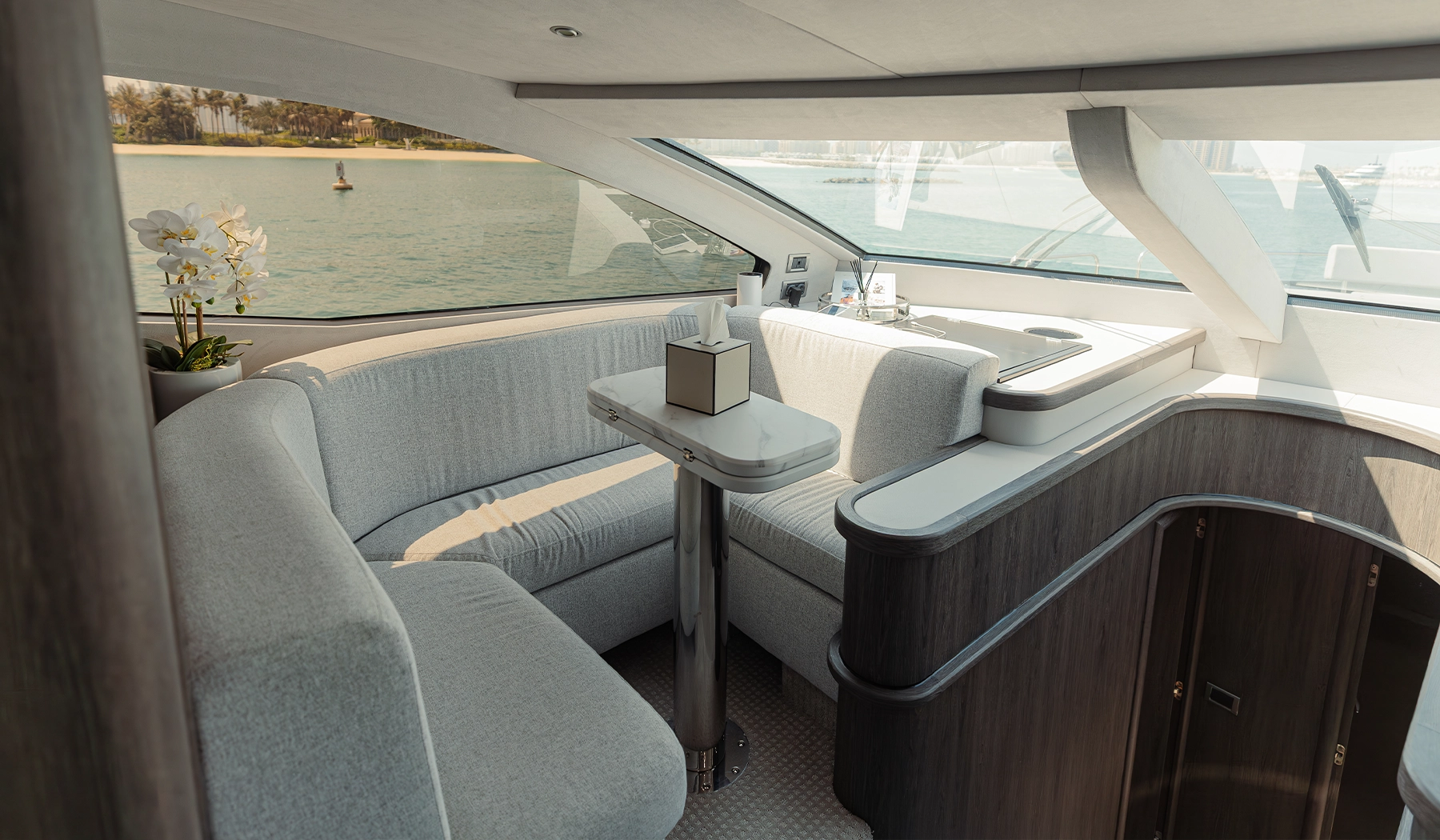 Powered by high-performance twin engines, Matrix promises a smooth and comfortable journey. Whether you’re cruising through Dubai Marina, anchoring at the Burj Al Arab, or simply relaxing onboard, this yacht delivers the perfect setting for a memorable day on the water.