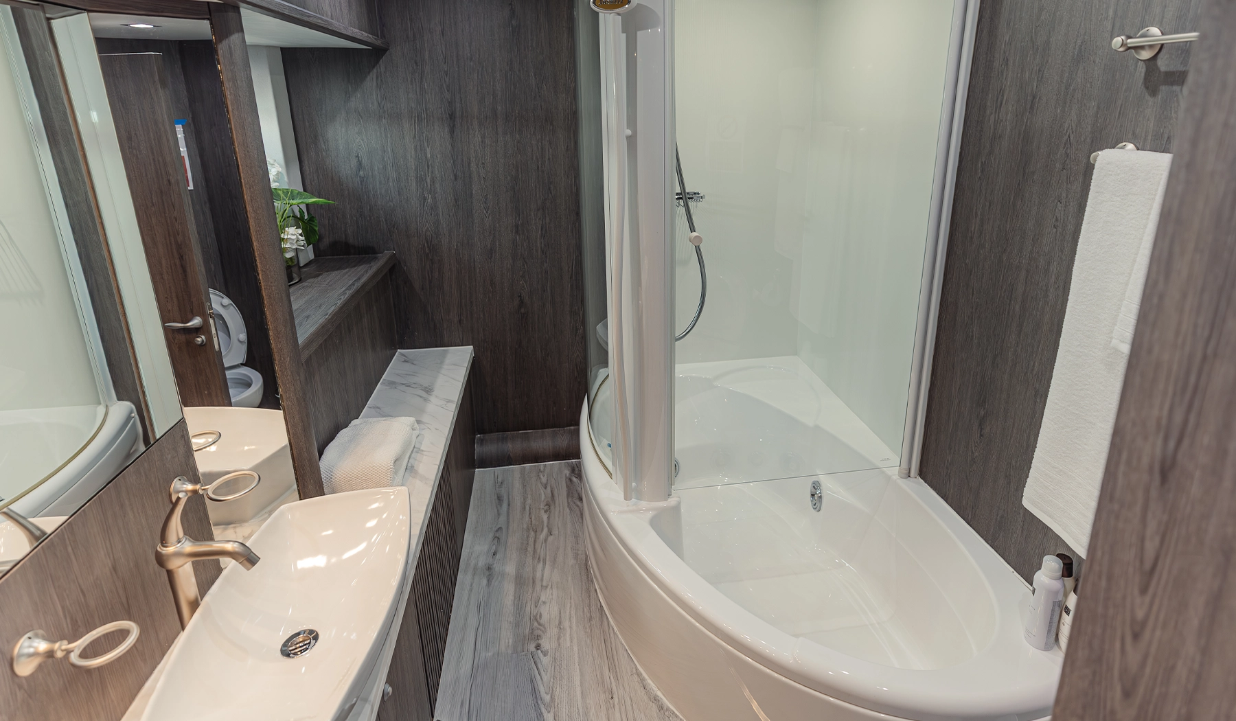 • Luxurious cabins, including 1 Master, 1 VIP, and 2 Double, all with private baths.