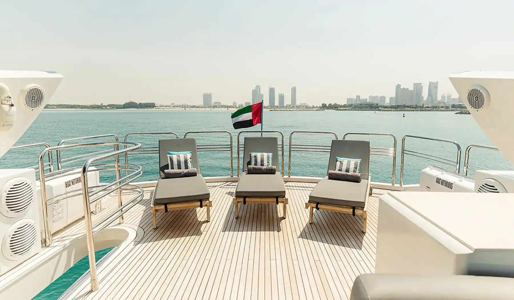 With spacious outdoor decks, a sunbathing area, and alfresco dining spaces, Notorious creates the perfect setting for socializing or unwinding. Powered by twin diesel engines and cruising at speeds of up to 24 knots, it delivers a smooth, reliable ride, whether you’re exploring Dubai Marina, relaxing near the Palm Jumeirah, or making a splash with the onboard water toys.